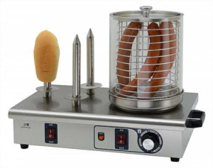 Аппарат для хот догов Hurakan предназначен для отваривания сосисок и подогрева булочек. Модель оснащена паровой баней для варки и хранения в горячем виде сосисок, а также тремя нагреваемыми штырями для подогрева булочек изнутри. Идеально подходят для оснащения уличных точек и заведений быстрого питания.