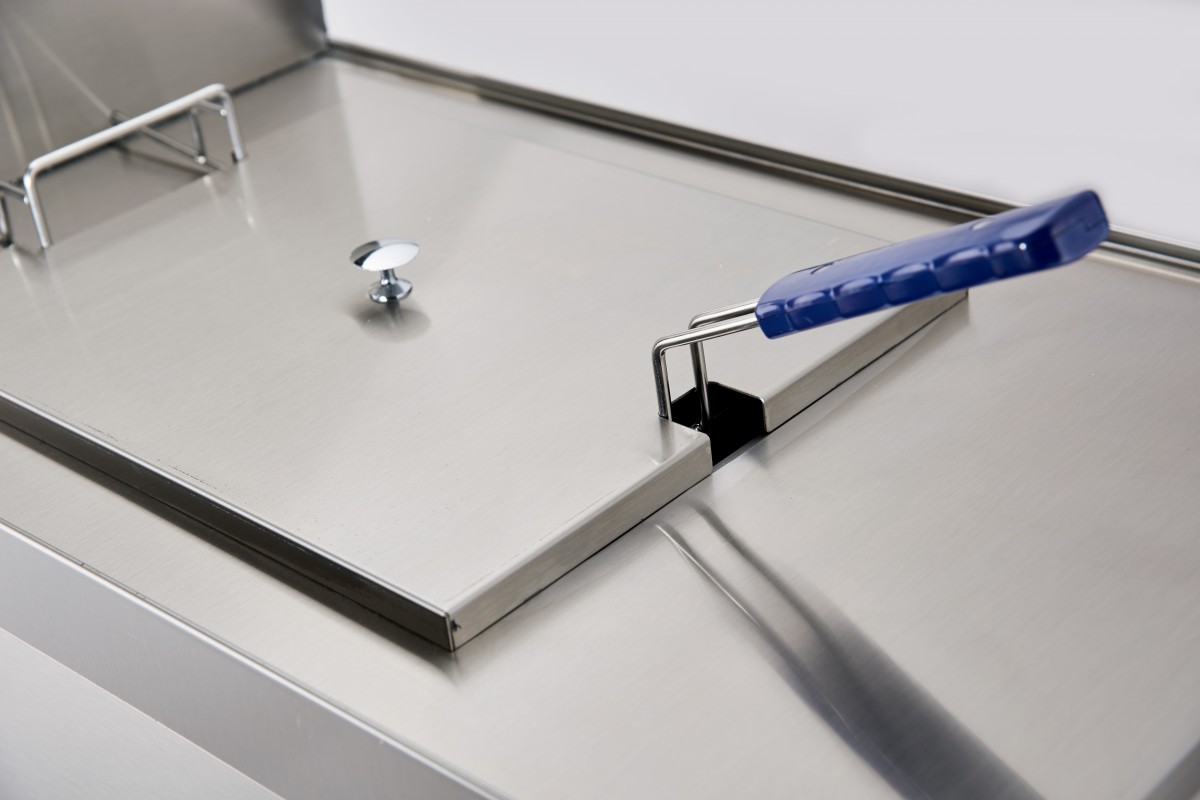 Конструкция фритюрницы выполнена из нержавеющей стали AISI 304 толщиной 1 мм, что обеспечивает долговечность и легкость в уходе. Задняя обшивка изготовлена из крашеного оцинкованного металла такой же толщины. Устройство оснащено системой "газ-контроль" и пьезорозжигом для безопасного и удобного использования. Слив масла осуществляется через кран, расположенный на передней панели, а регулируемые по высоте ножки позволяют адаптировать фритюрницу под любые условия.
