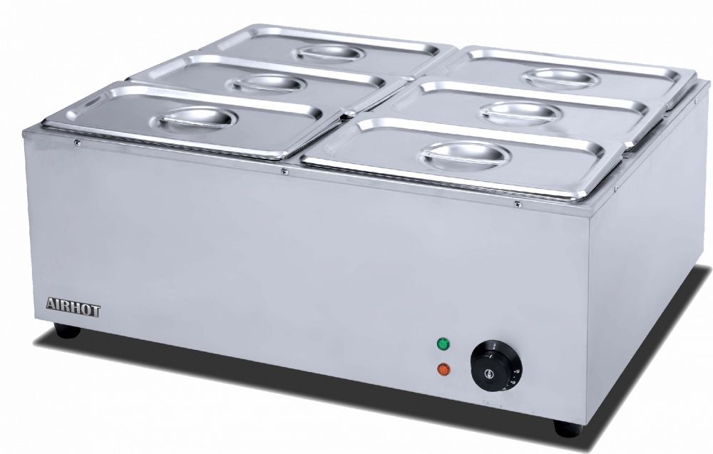 Мармит Airhot BM-6 предназначен для поддержания температуры блюд на высоком уровне. Это устройство идеально подходит для оснащения линий раздачи как в небольших, так и в крупных заведениях общественного питания, а также для использования в тепловых блоках горячих цехов и ресторанов. Изготовленный из нержавеющей стали, мармит обеспечивает надежную защиту от коррозии и гарантирует долговечность.