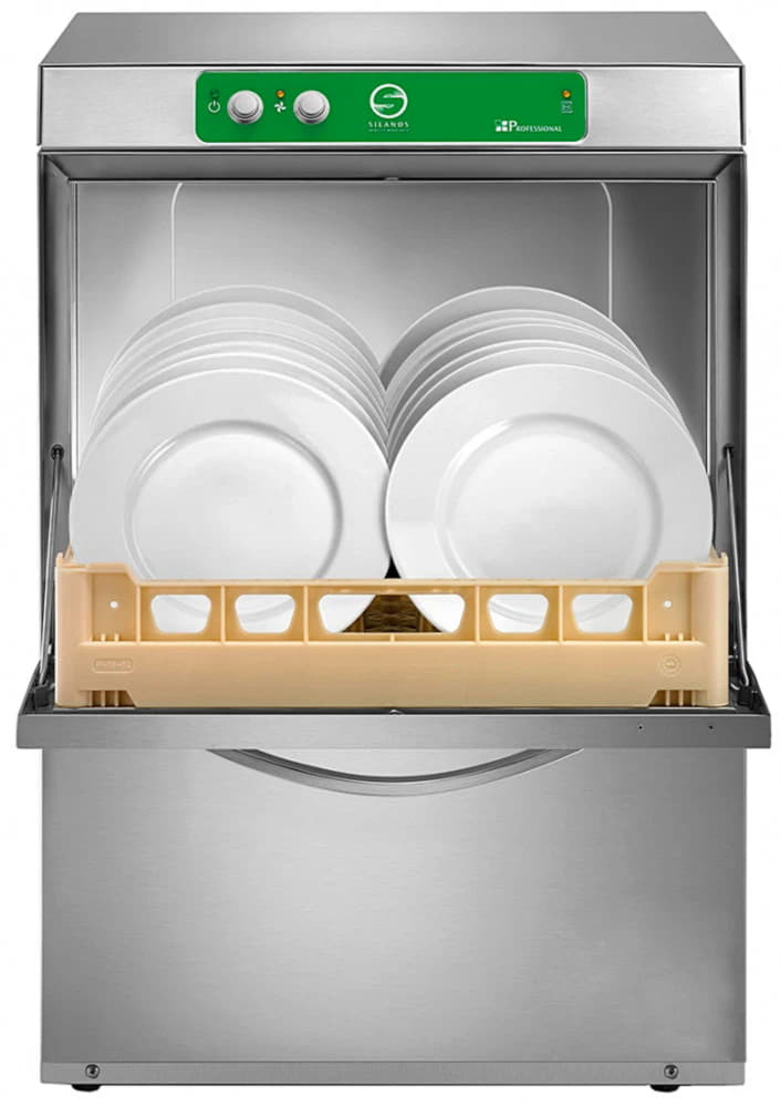Профессиональная посудомоечная машина PS D50-32 с дозаторами и помпой предназначена для мытья тарелок и столовых приборов.