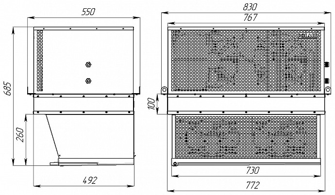 - Габариты: 830 мм (ширина) x 550 мм (глубина) x 665 мм (высота)