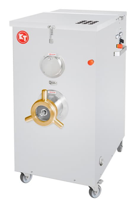 Корпус - чугун, шнек - алюминий, производительность до 1500 кг/ч, чаша 95 л, диаметр решетки 130 мм, 3 мм ячейка на выходе.