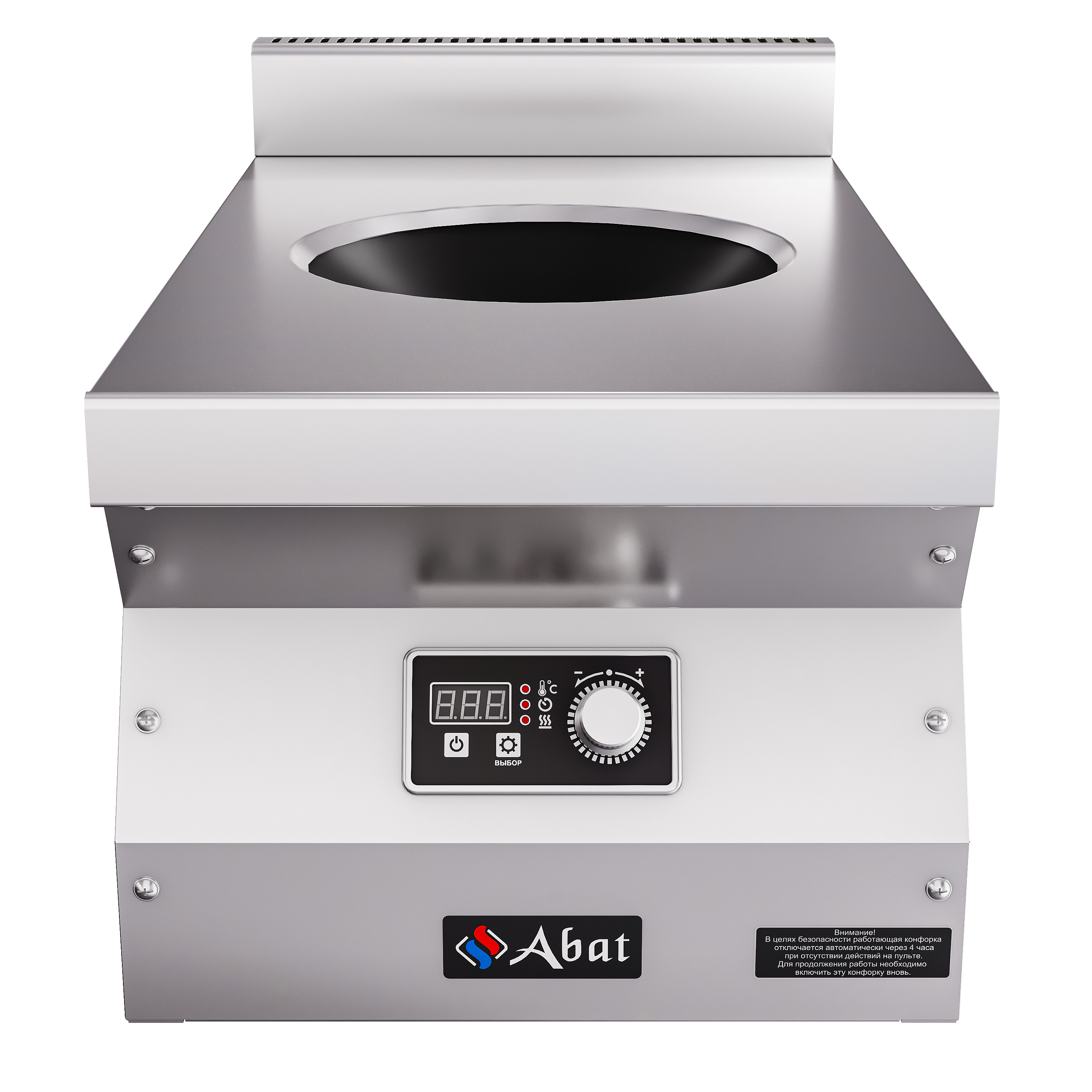На задней панели устройства установлены два вентилятора для охлаждения, а столешница, лицевая и боковые панели, а также воздуховод изготовлены из нержавеющей стали, что гарантирует долговечность и устойчивость к коррозии. Ножки плиты регулируются по высоте, что позволяет адаптировать её под различные условия работы.