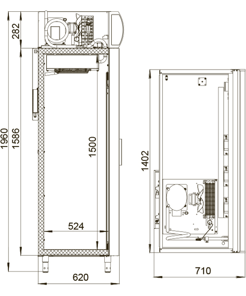 Шкаф изготовлен из оцинкованной стали с полимерным покрытием, что обеспечивает долговечность и защиту от коррозии. Стенки имеют толщину 43 мм, что способствует отличной теплоизоляции. Стеклопакеты, установленные в алюминиевых рамах, обеспечивают не только эстетичный внешний вид, но и высокую теплоизоляцию.