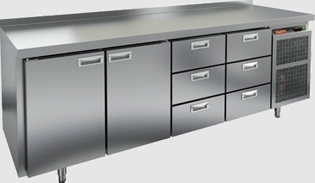 Корпус стола также изготовлен из нержавеющей стали, что придает ему прочность и устойчивость к внешним воздействиям. Толщина теплоизоляции составляет 50 мм, что способствует эффективному поддержанию заданной температуры. Охлаждение осуществляется динамическим способом, а оттайка – в автоматическом режиме, что упрощает эксплуатацию.