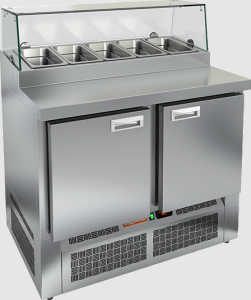Толщина теплоизоляции составляет 50 мм, а система охлаждения – динамическая, что гарантирует равномерное распределение температуры. Автоматическая оттайка и электронная панель управления делают эксплуатацию стола простой и комфортной. Рабочая поверхность имеет глубину 486 мм и может вместить до 5 контейнеров GN1/6. В комплект входят две полки размером 530х325 мм (GN 1/1), а также регулируемые по высоте ножки и автоматические доводчики дверей с фиксатором открытого положения, что добавляет удобства в использовании. Легкозаменяемые магнитные уплотнители обеспечивают надежную герметичность.