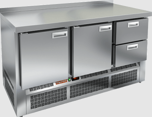 Столешница имеет толщину 50 мм и также выполнена из нержавеющей стали, что гарантирует прочность и устойчивость к повреждениям. Высота рабочей поверхности составляет 850 мм, что обеспечивает комфортные условия для работы. Модель имеет динамическую систему охлаждения и автоматическую оттайку, что упрощает эксплуатацию.