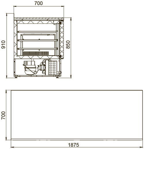 - Габариты: ширина 1850 мм, глубина 700 мм, высота 910 мм