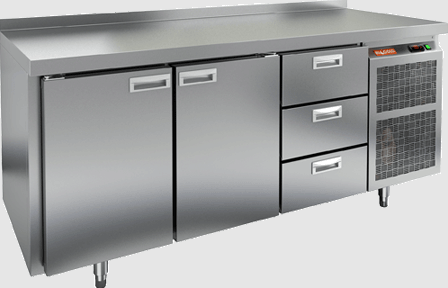 Объем морозильной камеры достигает 505 литров, что делает его идеальным выбором для заведений с высокой проходимостью. Холодильный агрегат расположен справа, что обеспечивает удобство в использовании. Стол соответствует гастрономическим стандартам, а наличие борта предотвращает случайное падение продуктов.