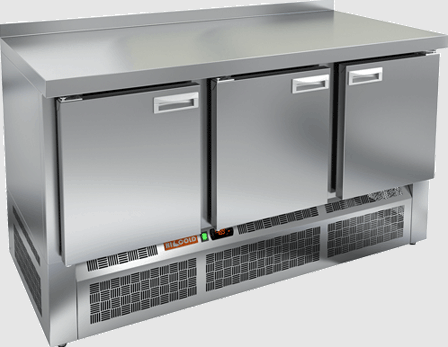 Объем морозильной камеры достигает 375 литров, что делает его подходящим для хранения значительного количества продуктов. Холодильный агрегат расположен в нижней части, что способствует оптимальному распределению пространства. Стол выполнен в гастронормированном формате, что упрощает организацию хранения.