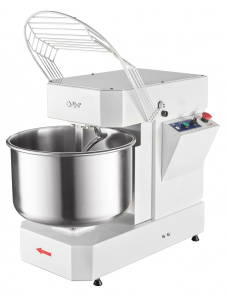 Корпус тестомеса выполнен из прочной конструкционной стали с полимерным покрытием, а детали, контактирующие с тестом, изготовлены из нержавеющей стали AISI 304, что обеспечивает долговечность и легкость в уходе. Скругленные внутренние углы дежи способствуют легкой гигиенической очистке.