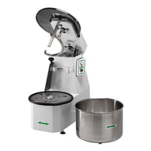 Тестомес Fimar 25/CN имеет съемную дежу и оснащен подъемной головкой с месильным органом.