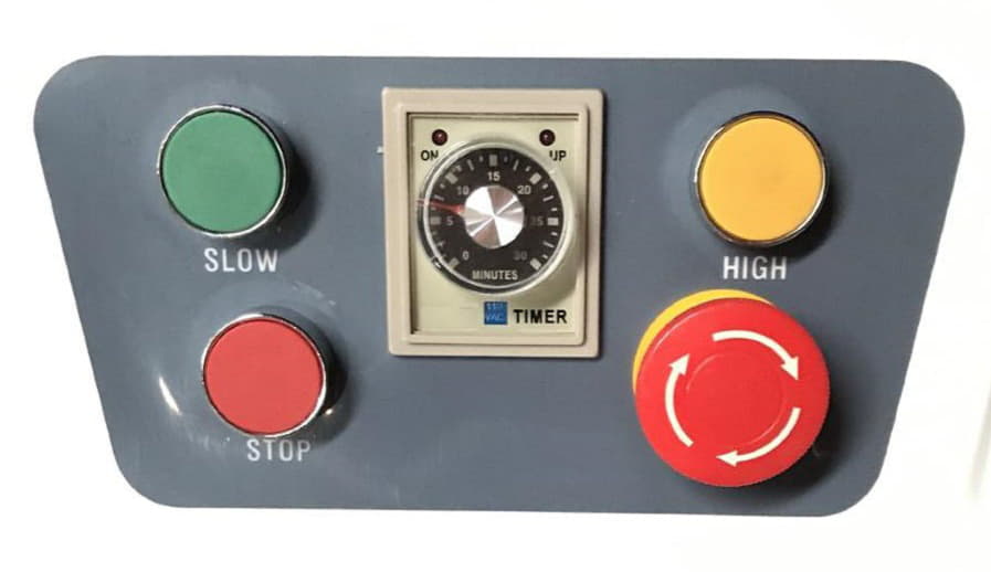 Панель управления аналоговая: 2 скорости кнопка пуска и кнопка аварийной остановки, таймер от 0 до 30мин.